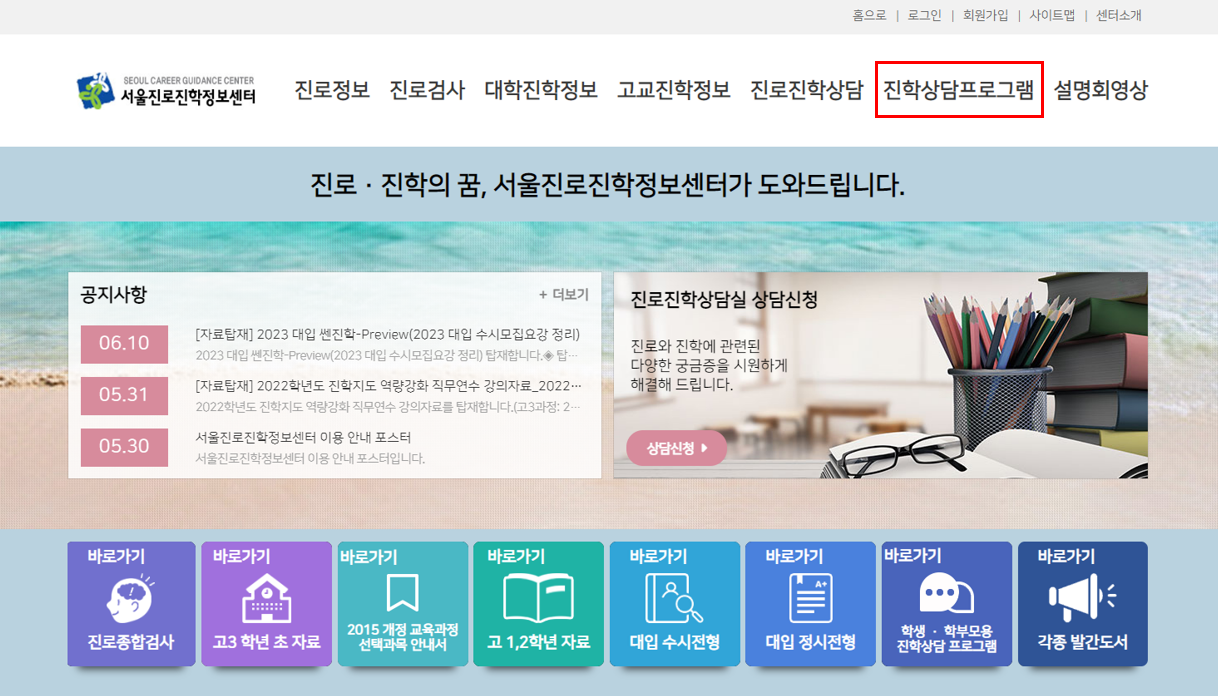 1. 서울 진로 진학 정보센터 > 진학 상담프로그램 > 성적 입력
