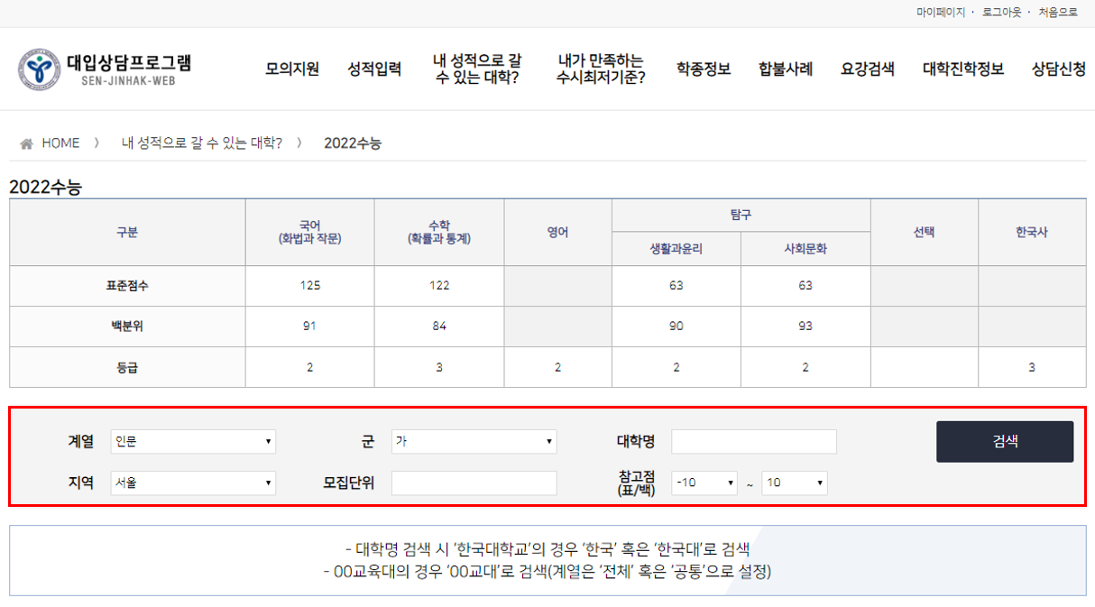 내 성적으로 갈 수 있는 대학 알아보기